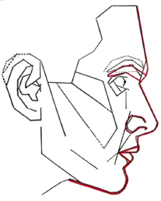 - 顔を横から見て鼻先と顎先を直線で結んだ際に唇がちょうど重なる、もしくは唇が少し内側に引っ込んでいること