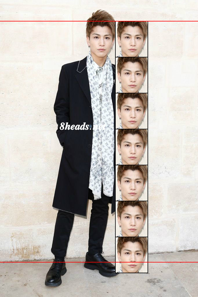 ヘアスタイルのトップが高い点と足を開いて右側に重心を置いてしまっているので、その点を考慮した上で測定してみました。おでこを出せるのはイケメンの特権ですね!