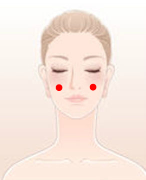 と言った多くの効果が見込めるとされ、押し方としては左右の四白(しはく)に対して両手の人差し指を当てて、5秒ほどかけてグリグリと回しながら押し、ゆっくりと離します。(これを5回〜10回程度行います)