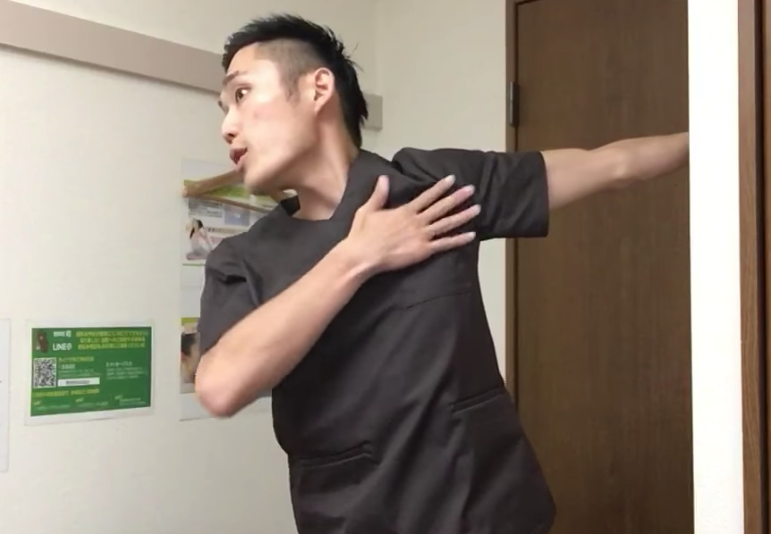 こちらは胸筋をほぐすストレッチになりますが、こちらも非常に簡単なので解説していきます。